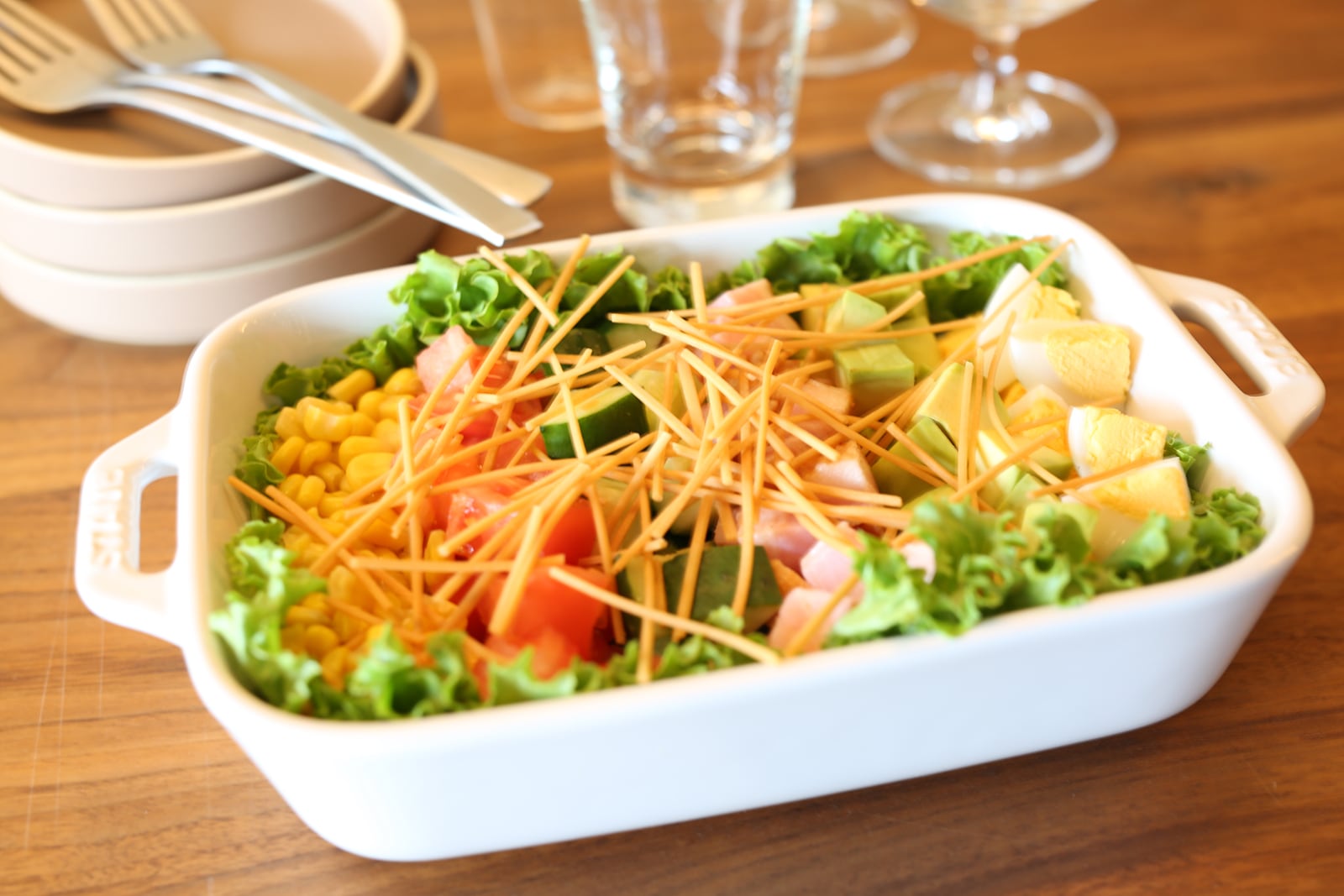 お好みの味のそうめんポリポリを、サラダにトッピング。